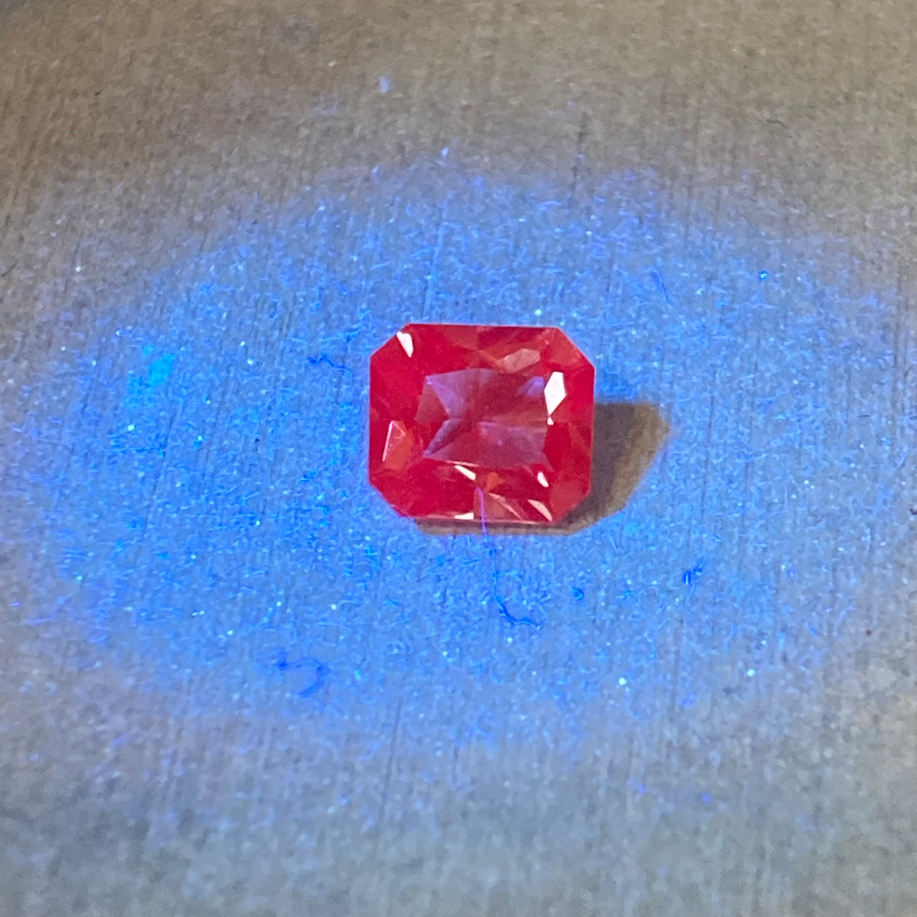 スピネルは含まれる元素によってUVライトで蛍光する特徴がありますが、このパープルスピネルもUVライトを当てるとピンクに蛍光します(写真参照)
