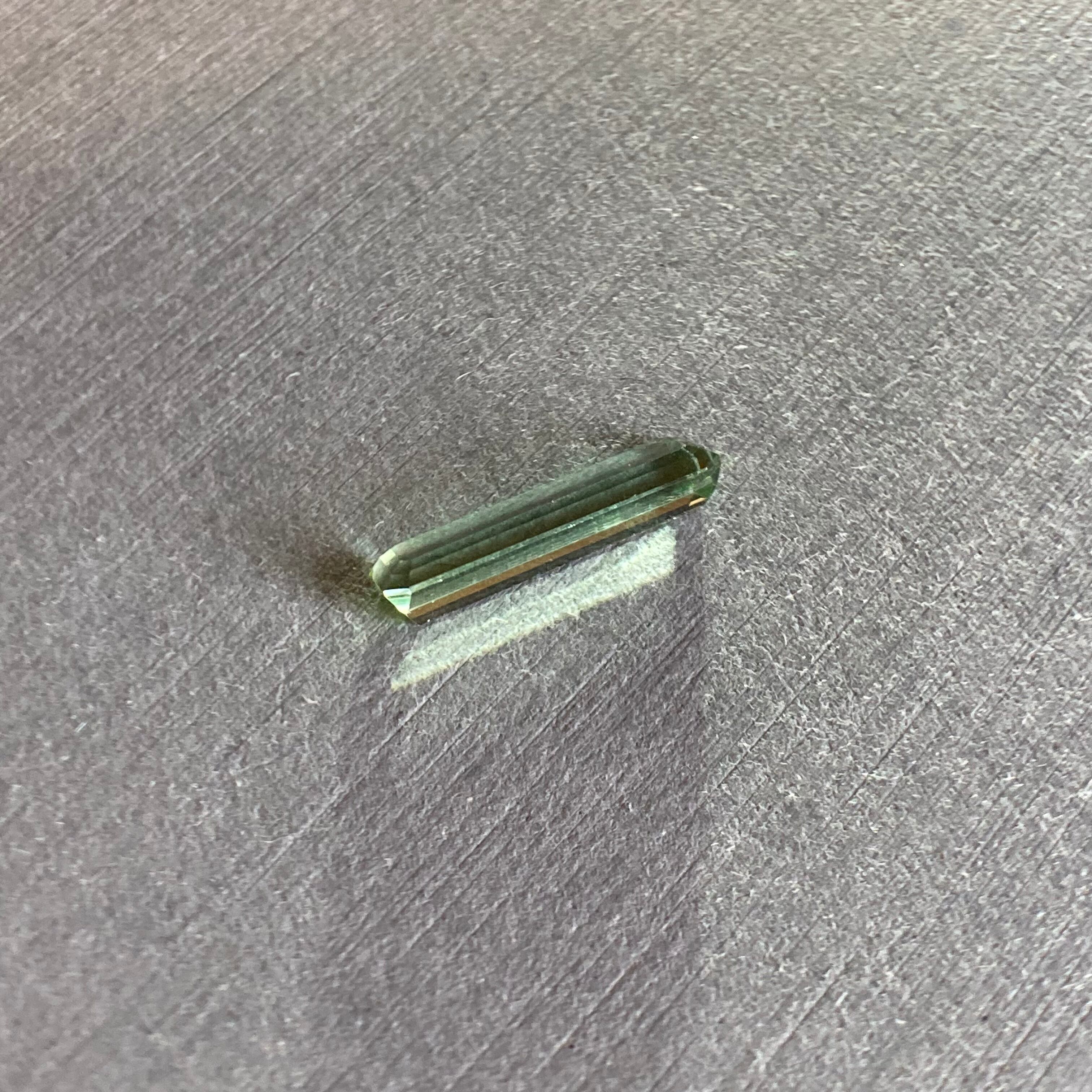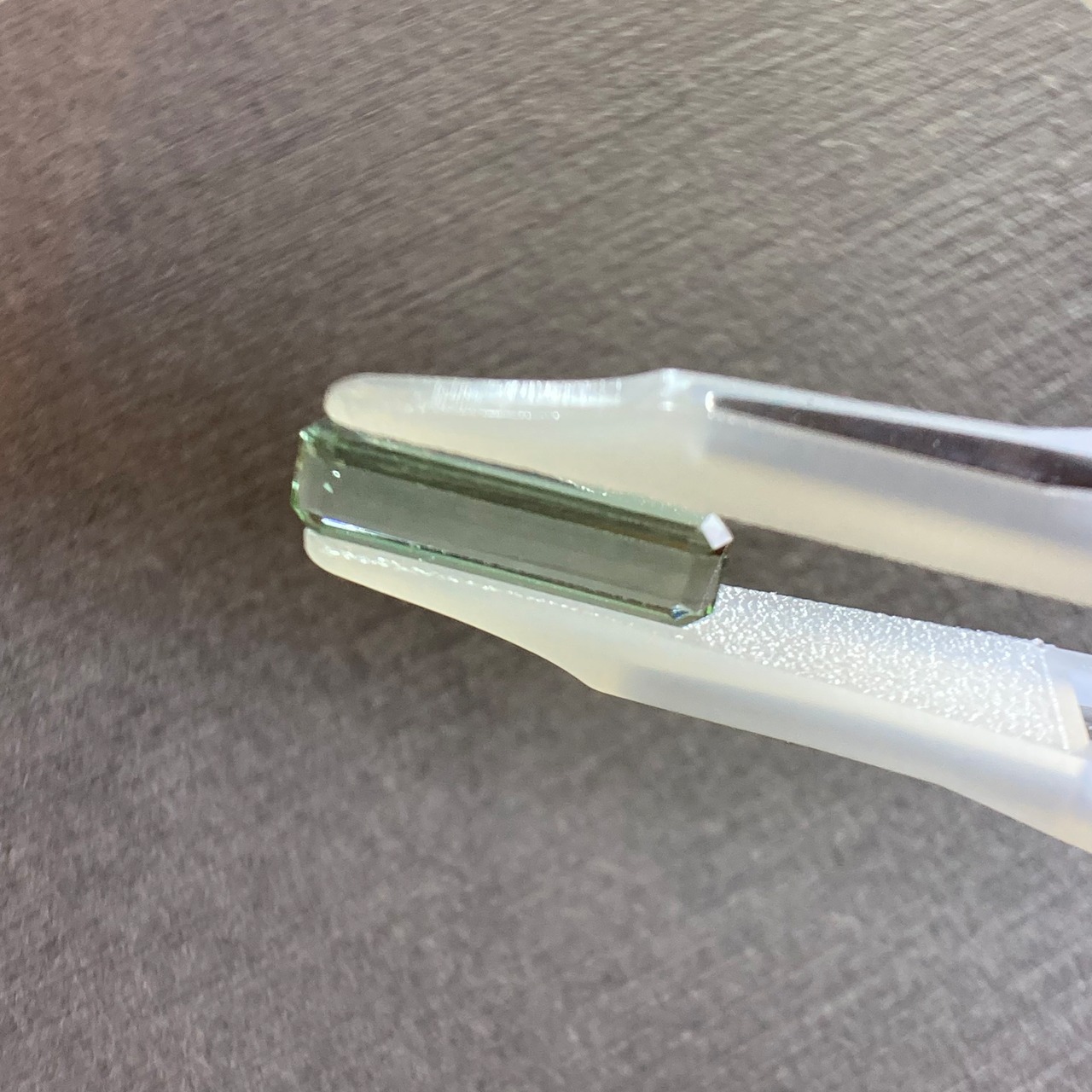 こちらのルースは爽やかなグリーンカラーのトルマリンで、細長いシェイプのステップカットとなっています。