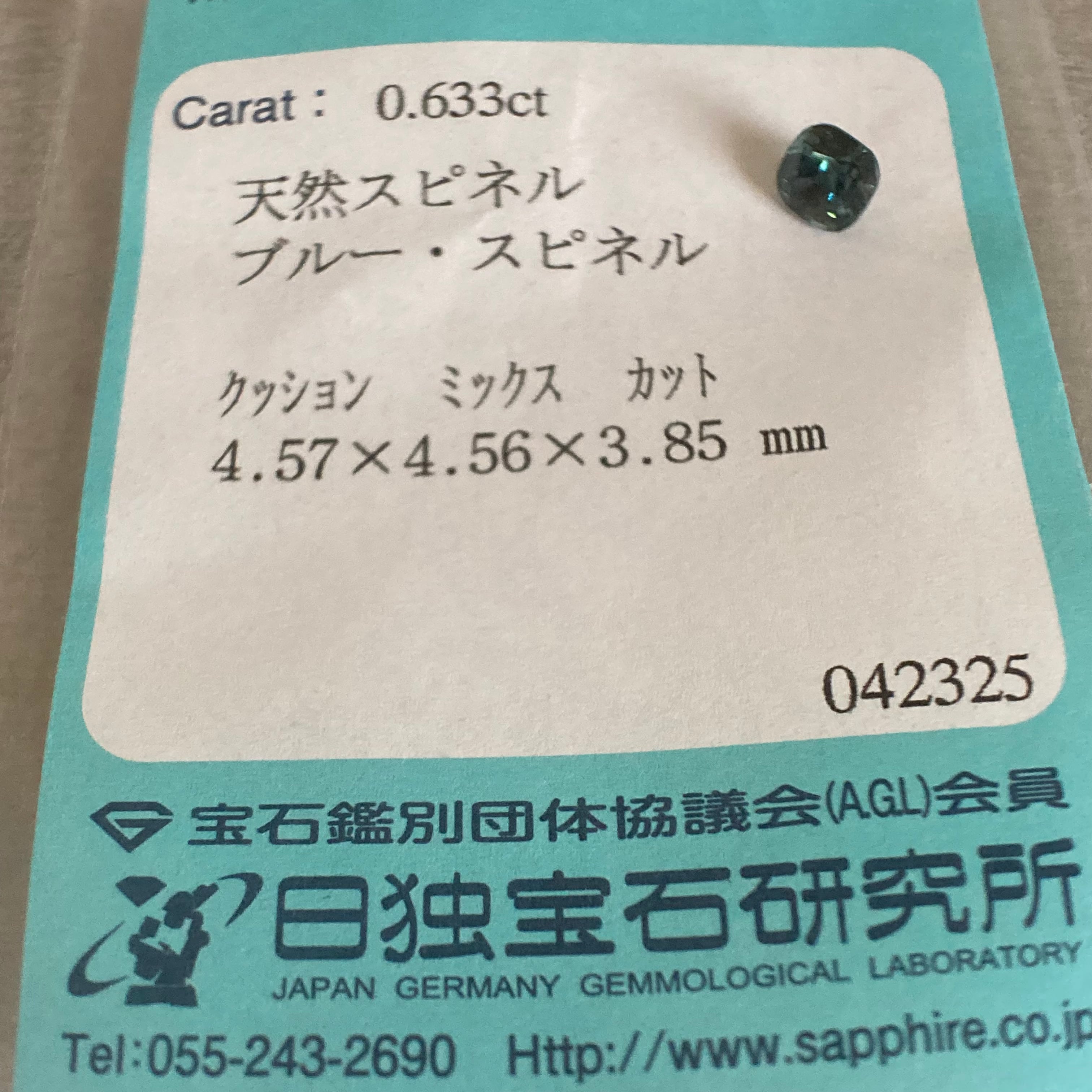 ブルースピネル 0.633ct 日独ソ付き